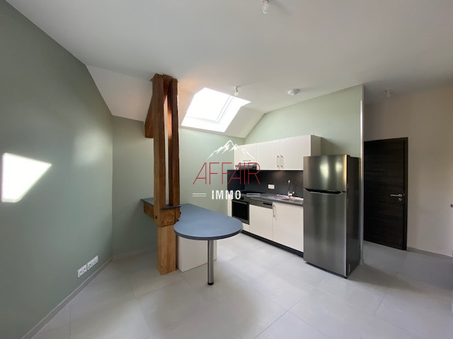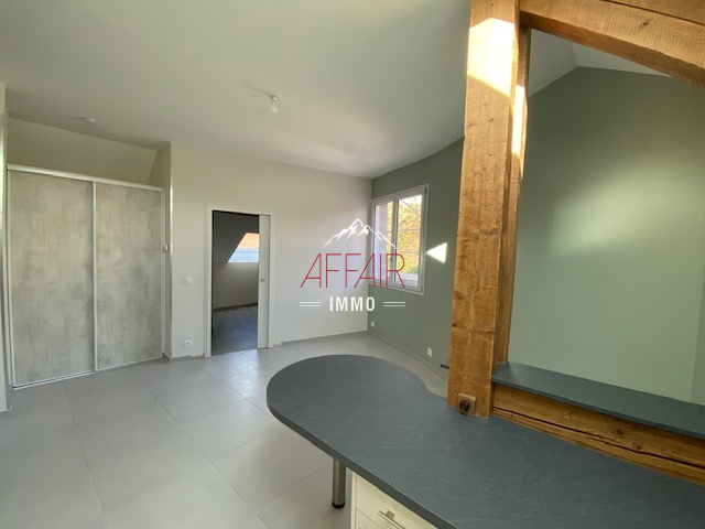 Dans une petite résidence entièrement rénovée, à 2 km du centre de Frangy et ses commodités, appartement de type 2 meublé d'environ 32,80 m², au dernier étage comprenant une cuisine entièrement équipée ouverte sur séjour avec placard, une chambre, une salle de douche, un WC avec machine à laver. 2 places de parking couvertes. Location meublée, bail 1 an renouvelable. Loyer 835 € + 50 € de charges Dépôt de garantie 2 mois de loyer soit 1670 € Honoraires d'agence charge locataire 360.80 €. Chauffage au sol et eau froide compris dans les provisions pour charges. Electricié et eau chaude individuelle. Jouissance d'un jardin collectif non attenant.