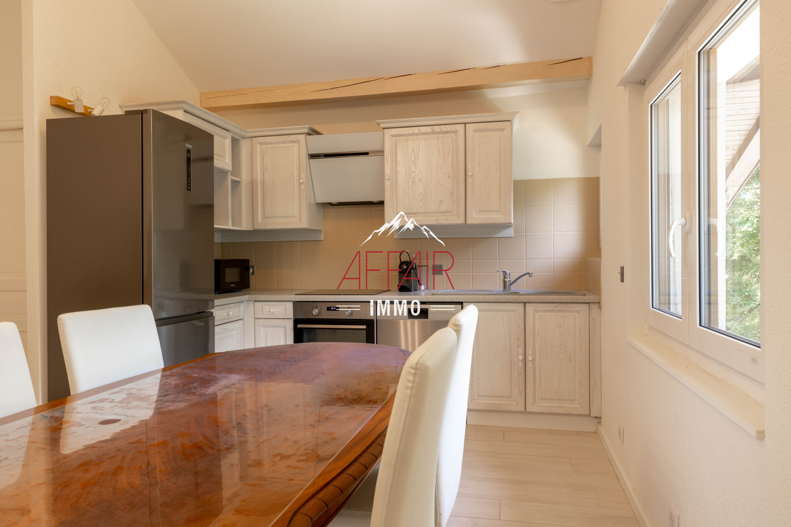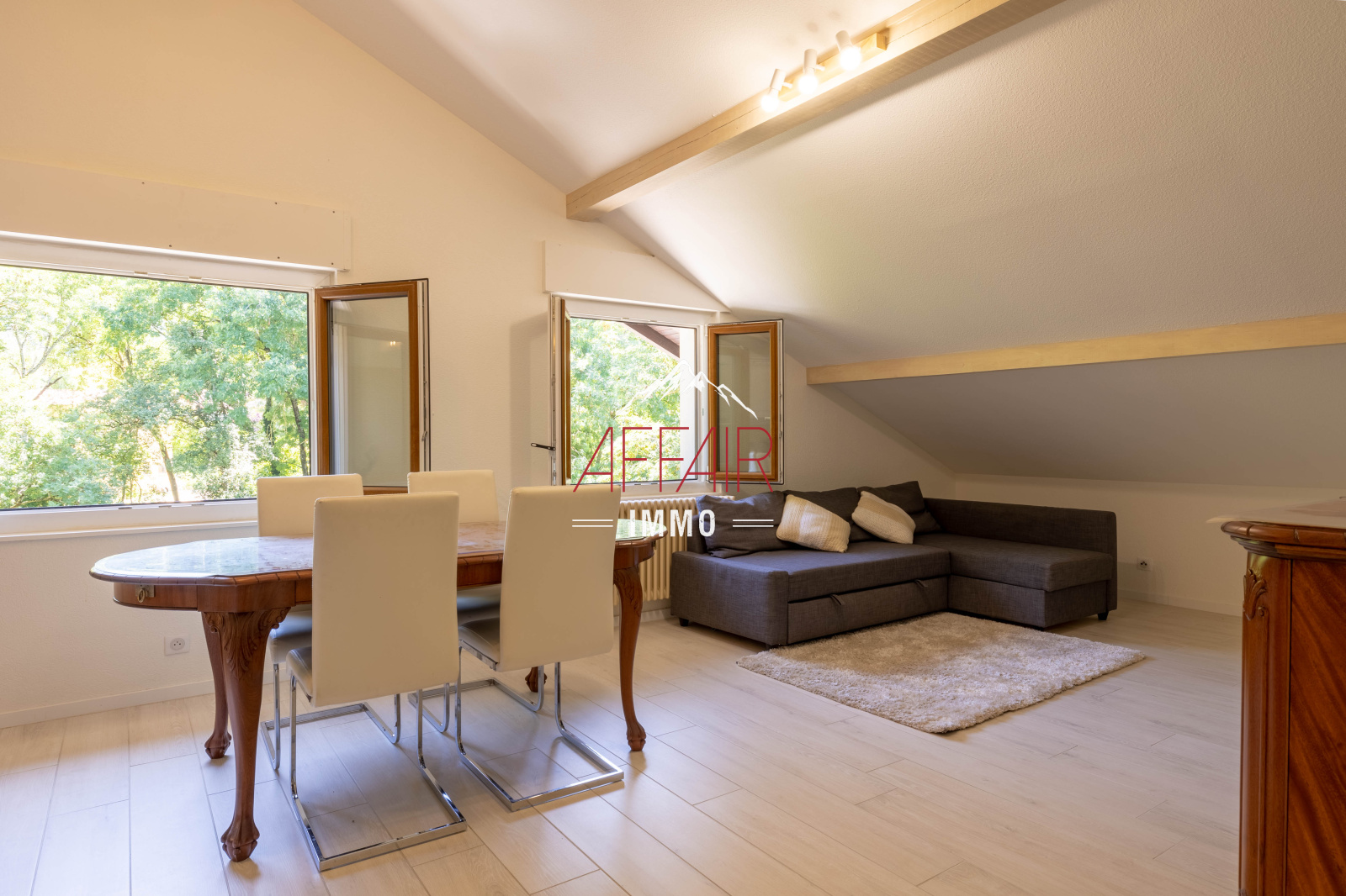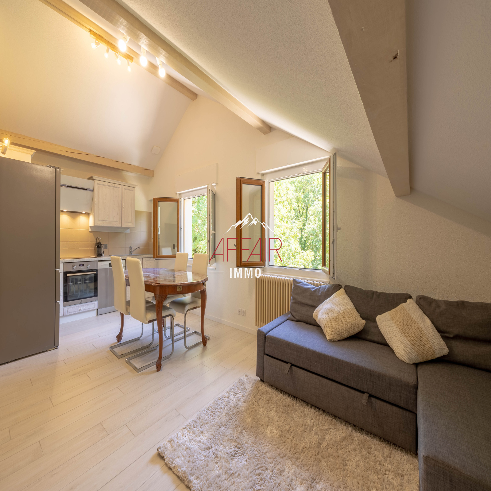 Sur la commune d'ARCHAMPS - 74160, à 5 min de la douane de la CROIX DE ROZON, à 20 minutes aéroport GENEVE. Au 1er et dernier étage d'une maison rénovée, un appartement de type 3 meublé comprenant une entrée, une cuisine entièrement équipée (four, micro-onde, réfrigérateur, plaque de cuisson, hotte et lave vaisselle), ouverte sur la pièce de vie, deux chambres, un salle de bains avec machine à laver et un WC. En annexe un jardin et une place de stationnemenrt extérieure.