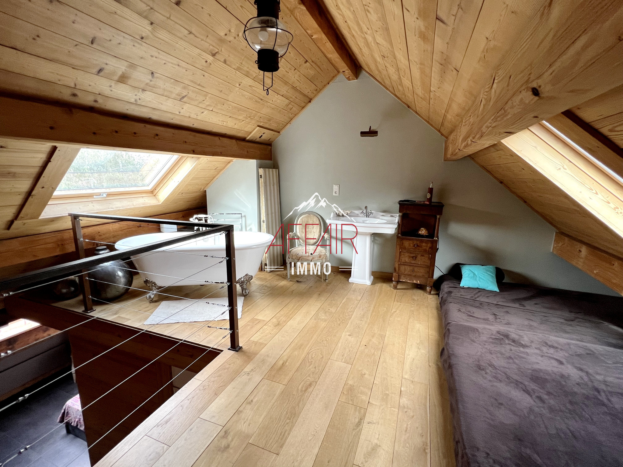 Appartement triplex de 7 pièces en rez de jardin, location meublée offrant une cuisine entièrement équipée, une pièce de vie avec cheminée double foyer, une salle de douches hammam, un Wc indépendant, au 1er étage un deuxième salon avec balcon, au 2ème étage une chambre double, une chambre avec sa salle de douches et son poêle à bois donnant accès à une mezzanine offrant deux espaces couchage et une salle de bains ouverte. Garage, caves et buanderie. Chauffage au sol au rez. Loyer hors charges 2 545.40 €, pas de provisions de charges. Dépôt de garantie 5 090 €. Honoraires d'agence charge locataire 1 667.24€.