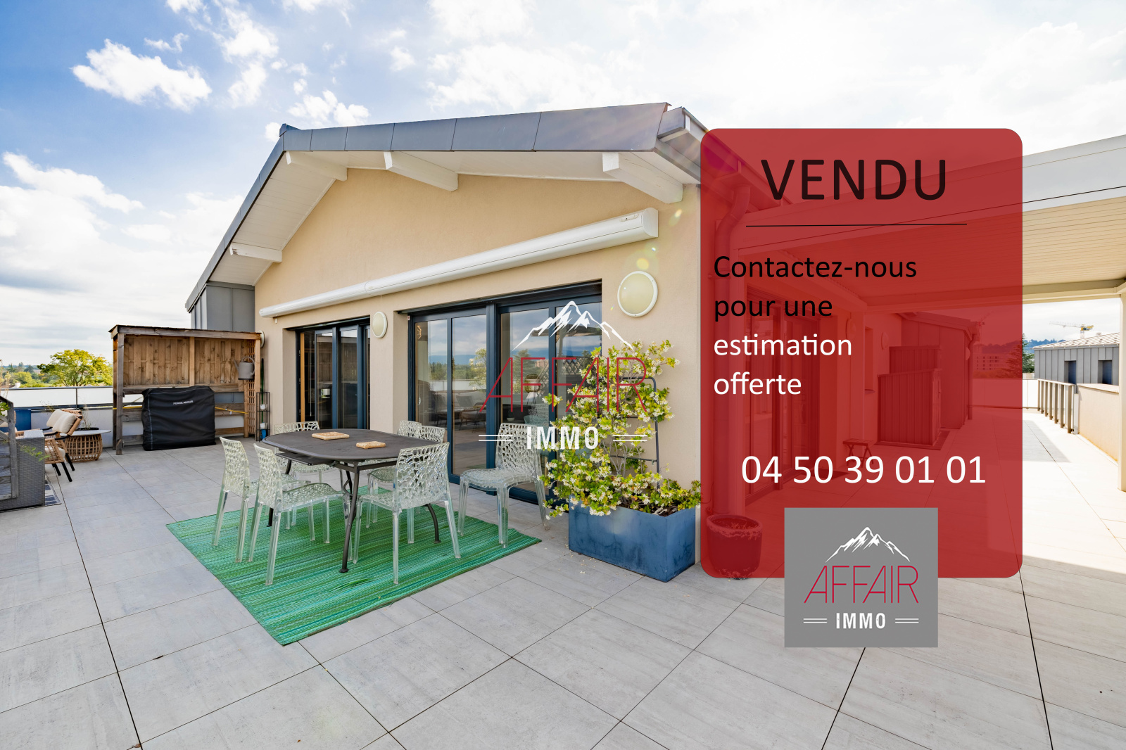 Sur la commune d'AMBILLY (74100) à 20 min du centre de Genève, au pied des douanes de Pierre à Bochet, de Mon Idée et de la voie verte, à 10 min à pied du Léman Express ou bus TPG, au 5ème et dernier étage d'une résidence sécurisée, venez découvrir ce bien rare à la vente type Villa sur le toit, appartement attique de type 5 de 143.71 m², magnifique terrasse de 120 m² avec sa pergola bioclimatique offrant une vue imprenable sur les montagnes, Genève et son jet d'eau. L'appartement est composé d'une grande entrée avec placard, une cuisine équipée de qualité ouverte sur un lumineux séjour, trois chambres avec placards dont deux équipées de leur salle d'eau privative, un bureau, une salle de bains avec espace buanderie, un wc visiteur avec son lave-mains, un cellier. Pour compléter ce bien : deux garages au sous-sol avec portes motorisées, deux caves et une place de parking extérieur.