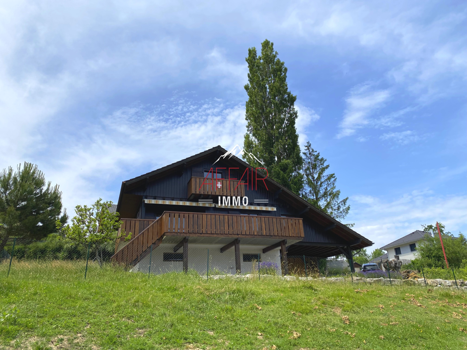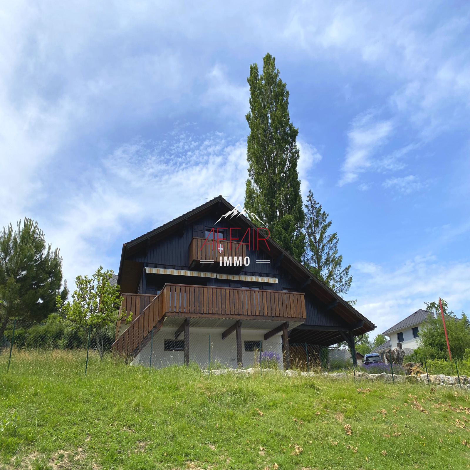 A 35 minutes de GENEVE, 20 minutes de St Julien en Genevois, au calme, vue dégagée. Sur la commune de Marlioz, chalet individuel implantée sur 831 m² de terrain, disposant d'une grande terrasse agréable et bien exposée. D'une superficie d'environ 100 m² + sous-sol complet, cette maison est composée d'une entrée avec WC, cuisine équipée, séjour avec cheminée donnant sur la terrasse, une chambre et une salle de bains à ce même niveau, à l'étage une grande chambre avec balcon et dressing, une chambre, une salle de douche avec WC. Au sous-sol, un grand garage, une buanderie avec douche, un WC, une cave. Abri pour couvrir deux voitures + un grenier pour le rangement. Spacieuse cour pouvant accueillir de nombreux véhicules.