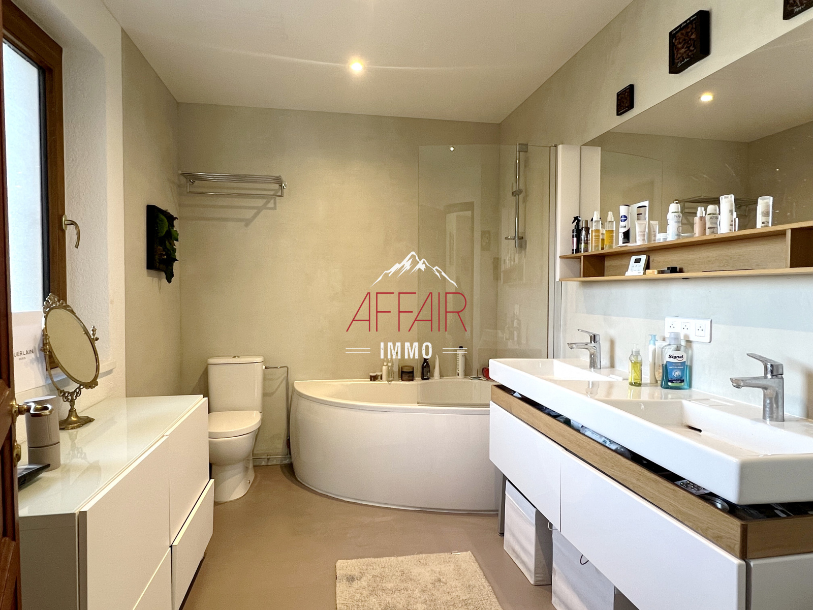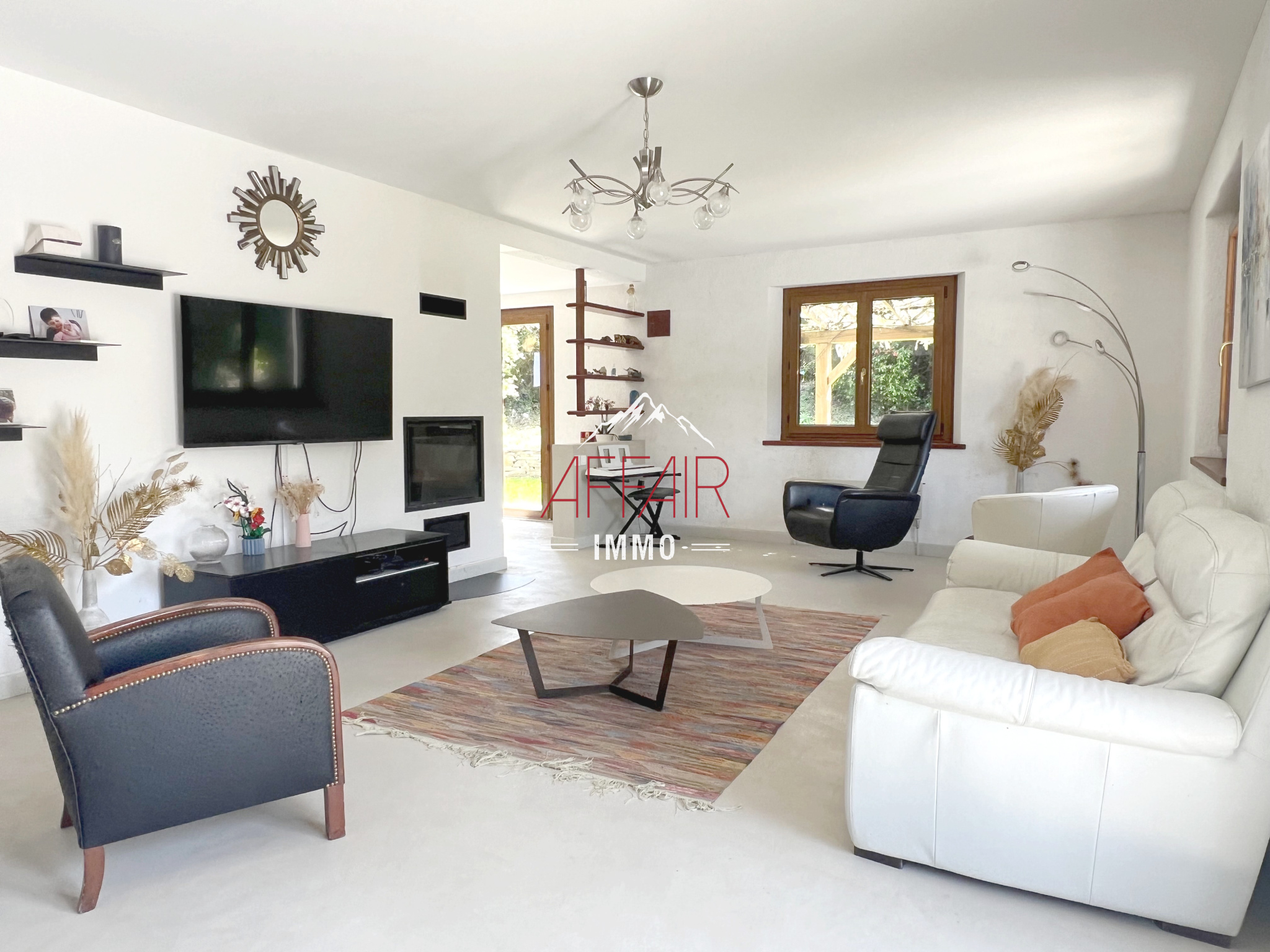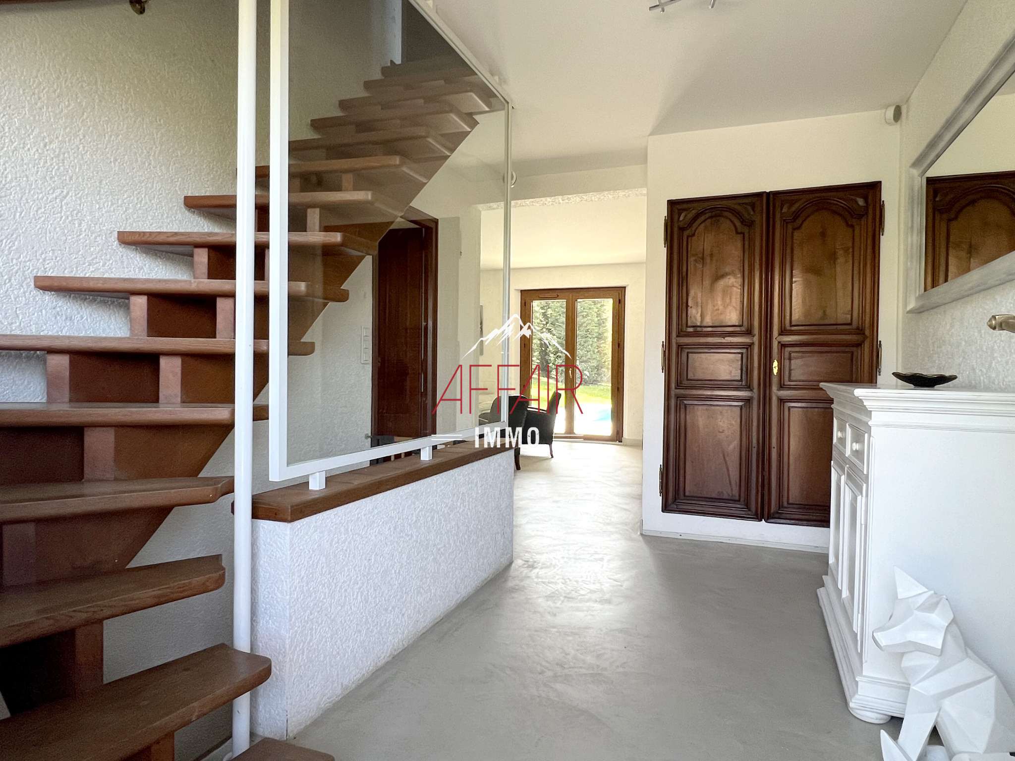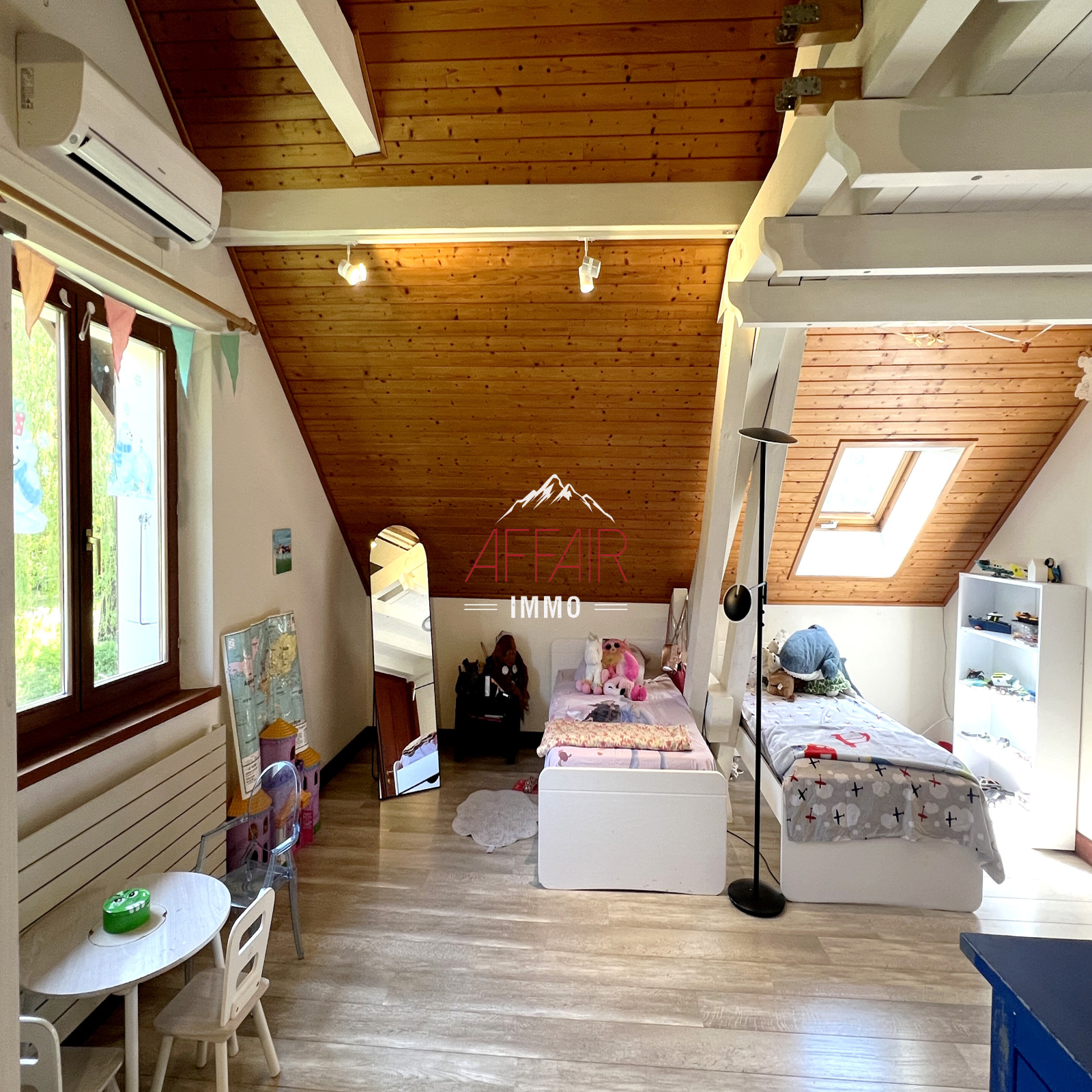 NEYDENS (74160) à 5 minutes de la Douane de Croix de Rozon, 20 minutes de Genève et de son aéroport, dans un agréable quartier résidentiel, charmante maison individuelle d'environ 160 m² implantée sur un magnifique terrain clos et arboré d'environ 1042 m². Au calme, elle offre une spacieuse et lumineuse pièce de vie avec une cheminée, une cuisine équipée avec son coin repas, le tout avec un accès aux terrasses et jardin agrémentée d'une piscine récente de dimentsion 6x3m, chauffée et sécurisée. Une suite parentale de plain pied avec placards intégrés, sa salle de bains avec WC. Un WC indépendant à l'entrée. A l'étage un espace bureau ou salle de jeux avec balcon, deux grandes chambres, une salle de douche avec WC. Un dressing. Possibilité d'aménager quatre chambres à l'étage si nécessaire. Un sous-sol aménagé avec buanderie, une cave à vin, une pièce de rangement, une pièce aménagée en chambre ou bureau, une salle de douche avec WC. Un garage avec porte motorisée et stationnements en extérieur. Chauffage au gaz, climatisation réversible, panneaux photovoltaïques, portail d'entrée motorisé.