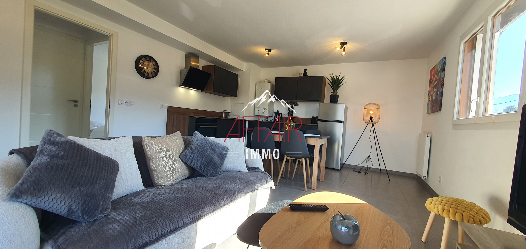 VERCHAIX - Situé proche de la navette qui dessert les stations de ski de Samoëns et Morillon et à 20 min des Gets, cet appartement T2 de 43.47 m² au 1er étage édifié en 2021 lumineux offre : une pièce de vie avec terrasse, une cuisine ouverte aménagée et équipée, une chambre avec placard et une salle de douches.