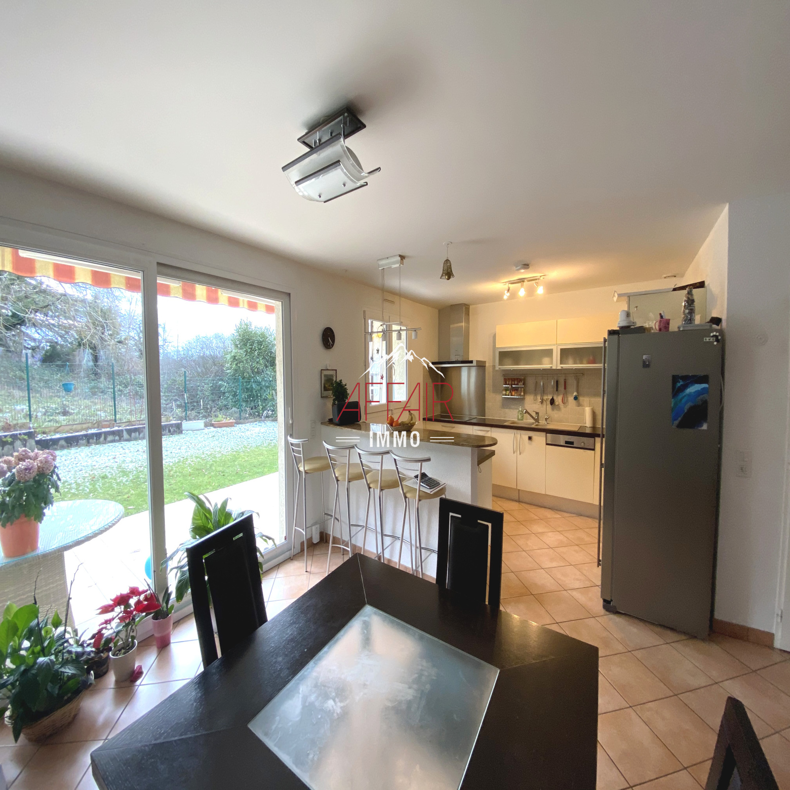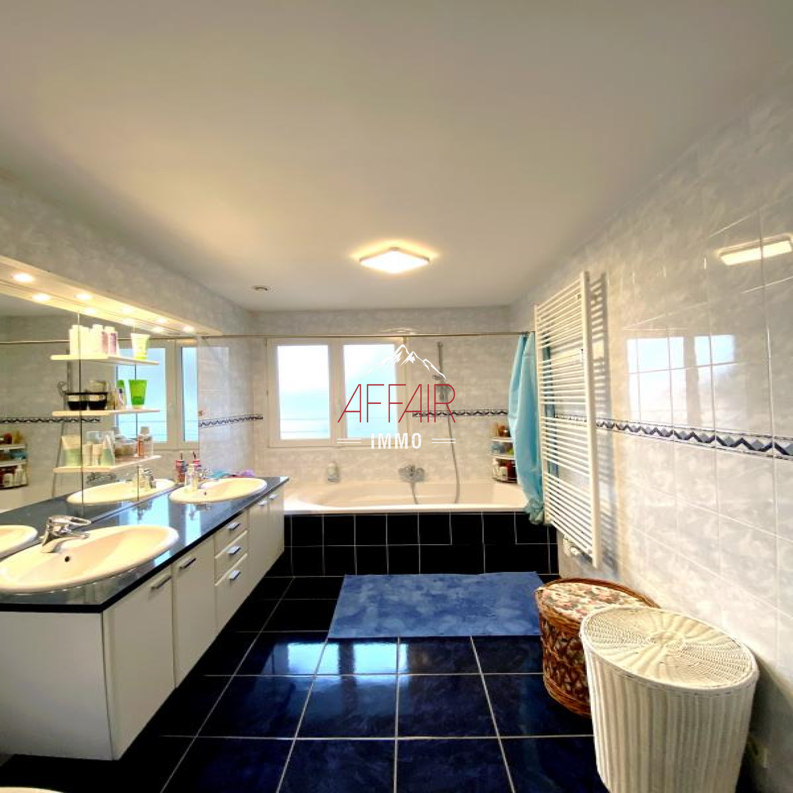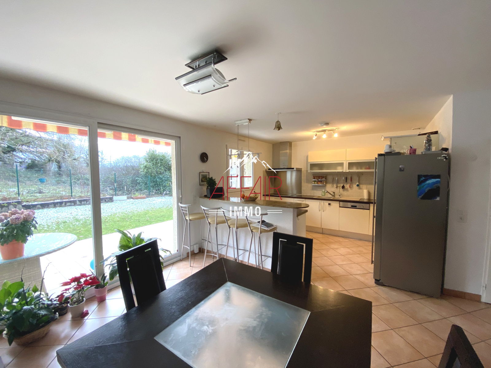 A 2 min DOUANE DE CROIX DE ROZON, au centre de Collonges s/Salève, proche toutes commodités (commerces, bus), maison mitoyenne côté garage sans vis à vis de 160 m², sur un terrain de 256 m², sur demi-niveau comprenant au rez de chaussée une cuisine ouverte sur un grand salon, un wc, au 1er demi-niveau un bureau (ou chambre), une chambre, au 2ème demi-niveau, une suite parentale de 26 m² avec une salle de douche et un wc pouvant être divisée en deux chambres, une chambre et une salle de bains avec wc. Un garage double avec local technique et cave.