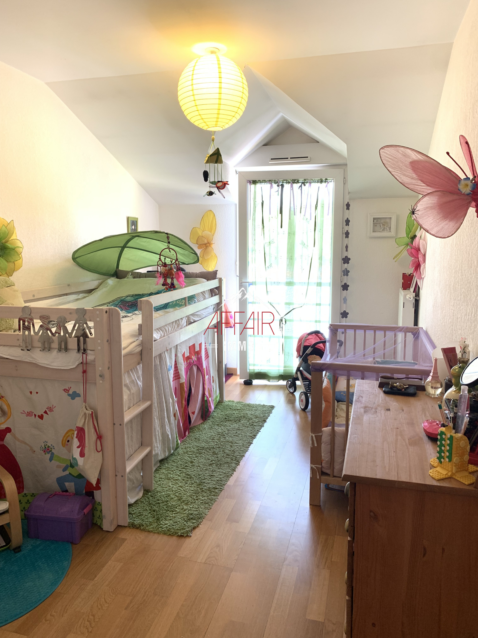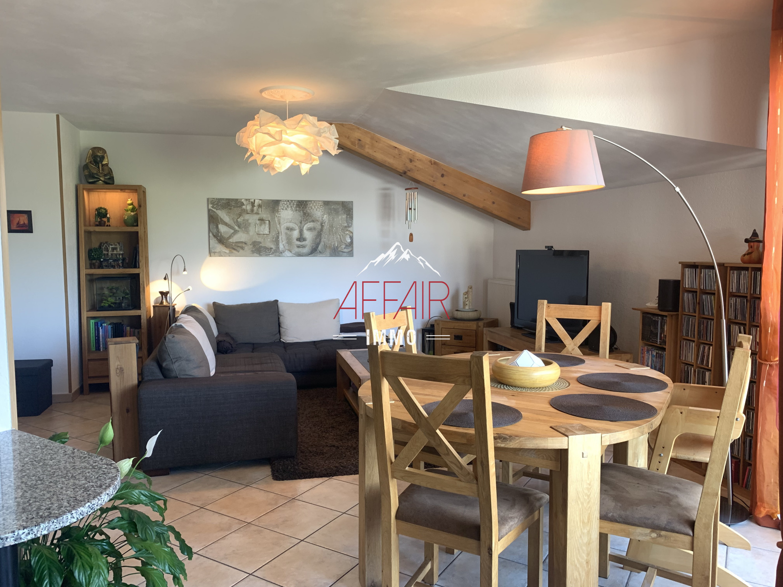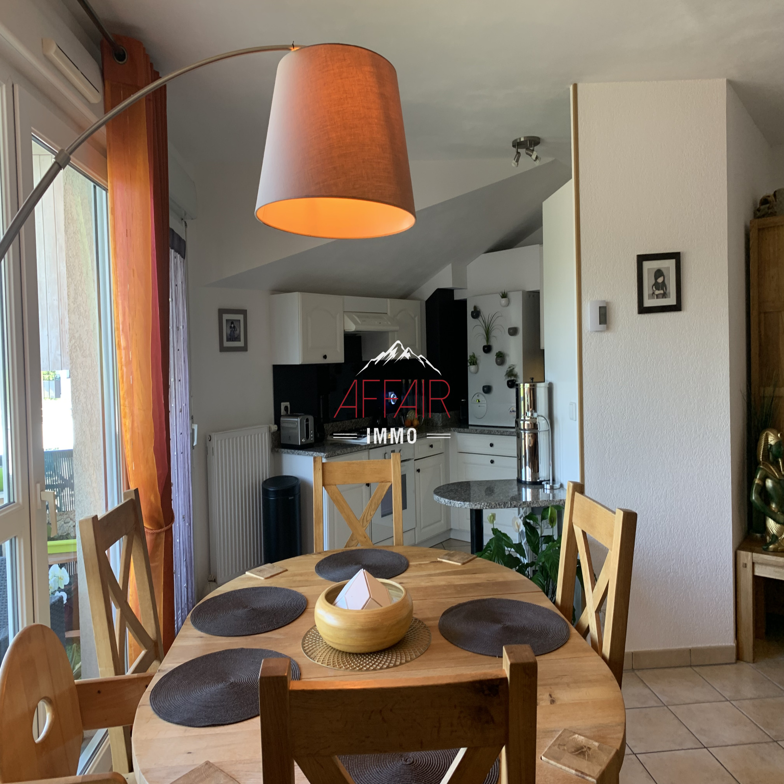 Dans une impasse et un cadre de verdure, au 3ème et dernier étage, spacieux appartement de type 3 de 78,46 m² comprenant une entrée avec placard, une cuisine équipée ouverte sur la salle à manger donnant sur un balcon avec une vue dégagée sur le Salève exposé Sud/Ouest, et le salon. Un coin nuit avec deux chambres avec placard. Un grand dressing. Une salle de bains. Un wc indépendant avec lave mains. Une cave. Un garage. Chauffage au gaz individuel. Cet appartement offre une possibilité d'aménagement différent côté chambre.
