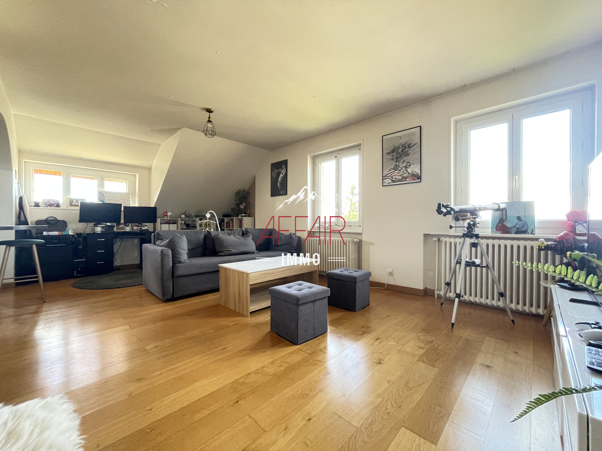 COLLONGES SOUS SALÈVE (74160) A 3 minutes de la douane de Croix de Rozon, 15 min centre GENEVE, 25 min aéroport. Au 2ème et dernier étage d'une petite copropriété, découvrez ce charmant appartement T3 d'environ 76 m² utiles (dont 72 m² loi carrez). Il offre une lumineuse et spacieuse pièce de vie avec une cuisine équipée ouverte, deux chambres, une salle de douche et un wc indépendant. Pour compléter ce bien, jouissance privative d'un jardin d'environ 200 m², un grand garage avec buanderie, une cave. Possibilité de parquer deux véhicules sur le parking de la copropriété.Chauffage collectif au fioul.