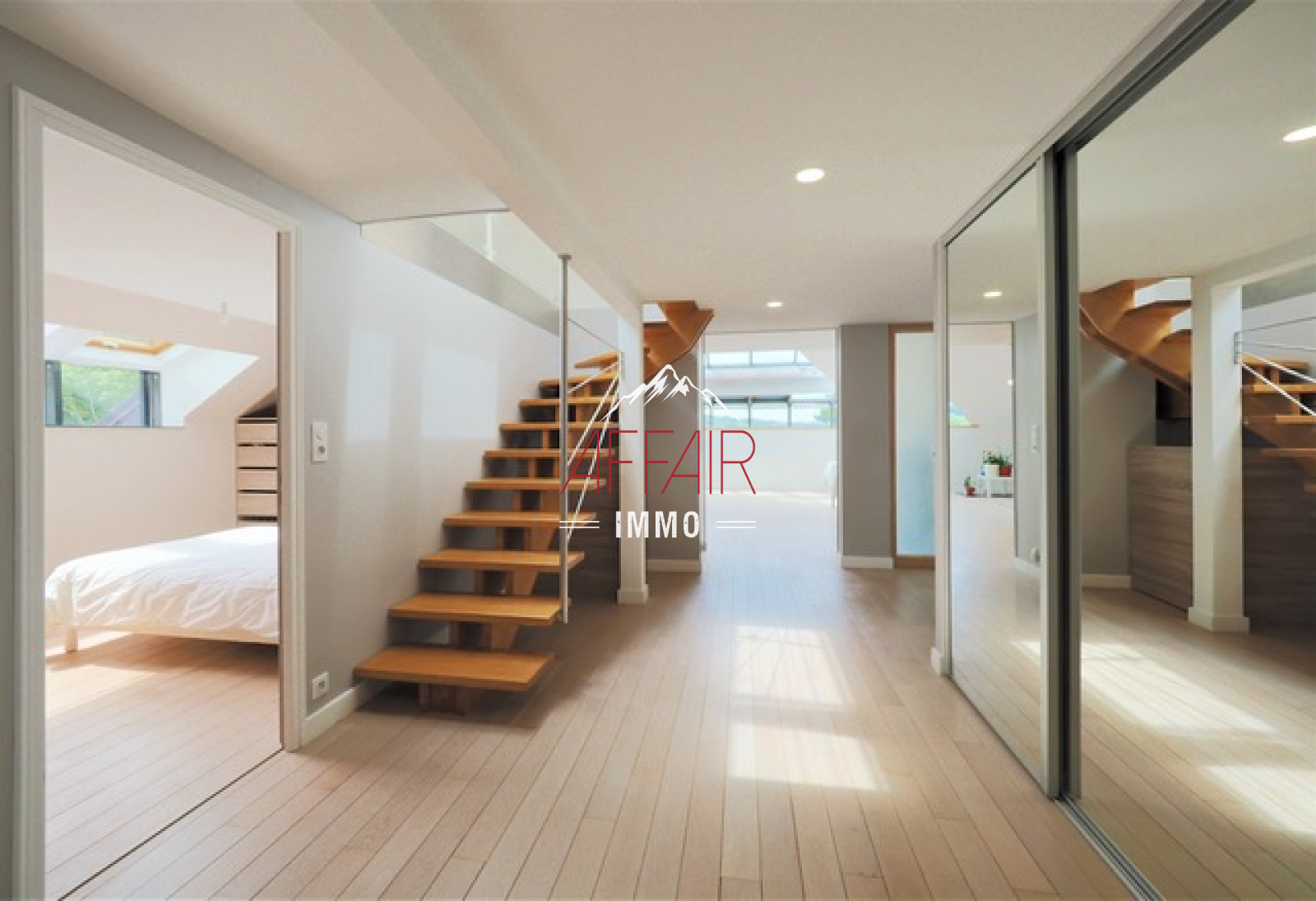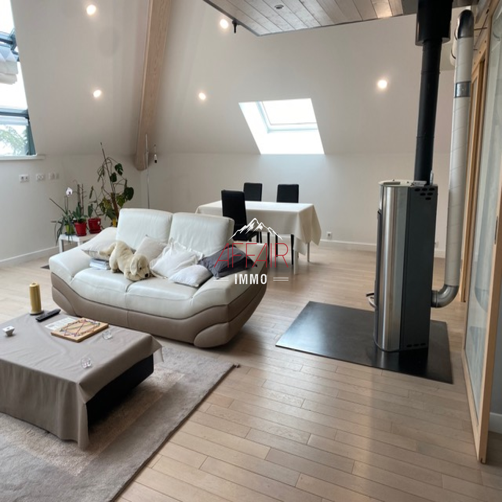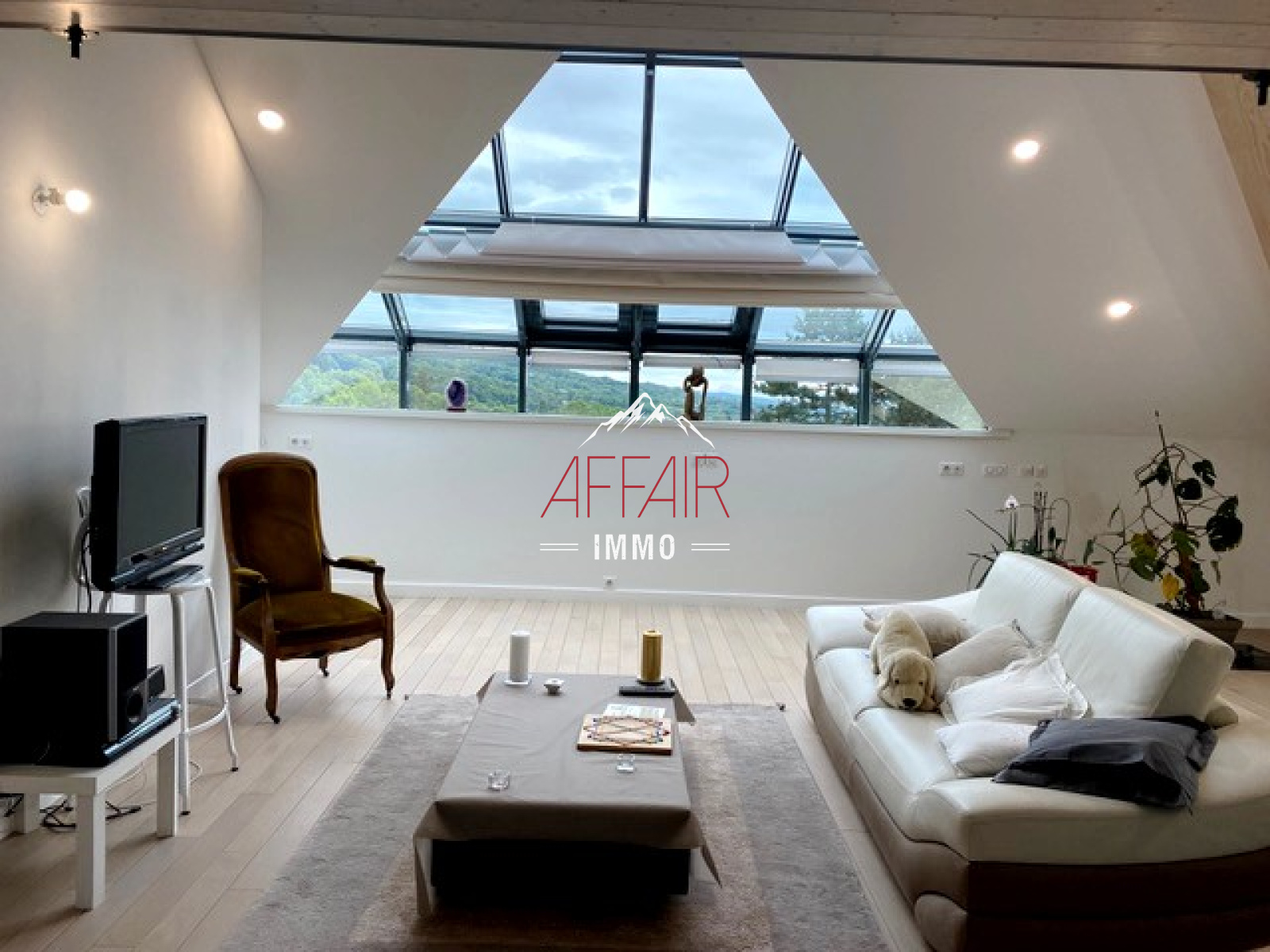 A 15 min du centre de Genève, 20 min de l'aéroport, sur les hauteurs de la commune de COLLONGES SOUS SALEVE (74160), au calme, offrant une vue imprenable sur le Lac Léman, Jura, Salève, dans un cadre de verdure, spacieux appartement de type 4 en duplex d'environ 124 m² habitables (181 m² utiles) au dernier étage, dans une résidence sécurisée de 2008. Il offre une entrée avec placards et un coin bureau, une cuisine indépendante avec son coin repas, un cellier, un spacieux et lumineux séjour d'environ 47 m² avec son poêle, deux grandes chambres avec palcards, un wc, une salle de bains. A l'étage une chambre avec rangements et aménagements sous pente, sa salle de douche avec wc, et un accès à la mezzanine. Chauffage individuel au gaz, climatisation réversible. Pour compléter ce bien un parking extérieur. Possibilité d'acquérir un garage.